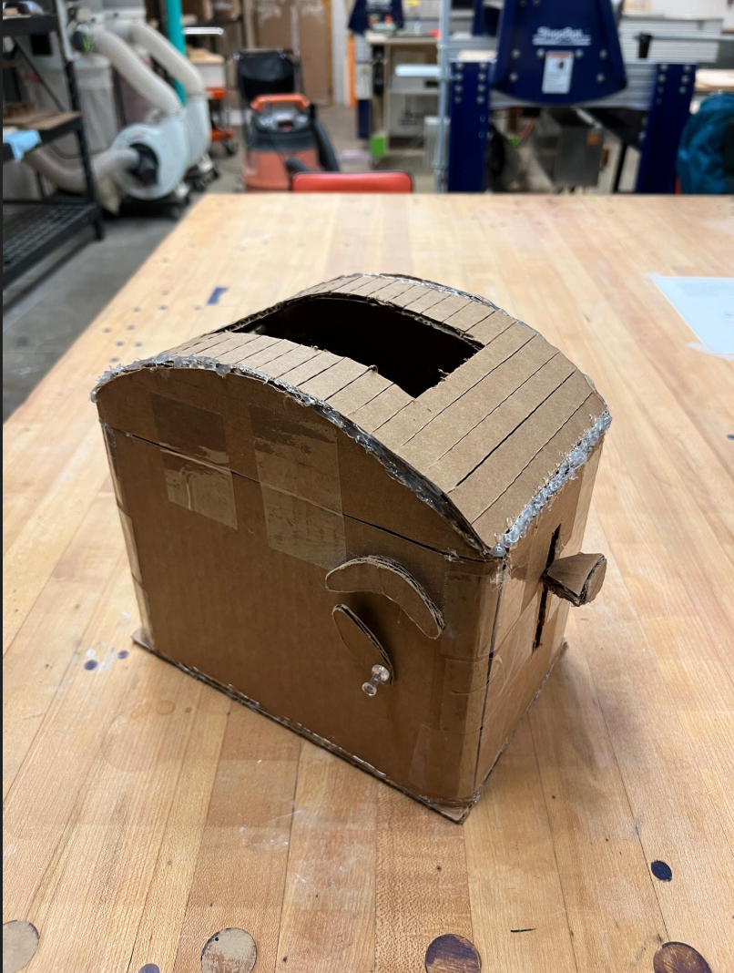 Tools and Materials: Cardboard, XPS Foam, PU Foam, HMA, 3M Bondo 907, Bamboo BBQ Skewers, Tape, X-Acto Knife, Tweezer, Hand-Filing Tools, Rust-Oleum Painter’s Touch 2X Ultra Cover White Spray Primer, Gold Spray, and Matte Black Spray
